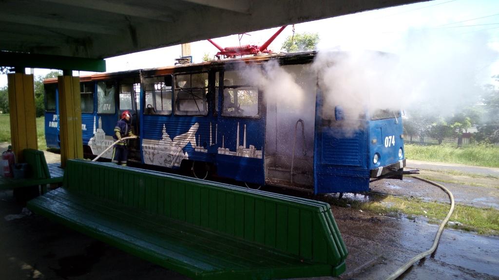 По прибытию к месту вызова в 11.35 было установлено, что в кабине трамвая марки КТМ-5, который стоял на остановке и следовал по маршруту, горит панель приборов. В момент возникновения пожара в трамвае находилось 11 человек, которые самостоятельно покинули транспортное средство.