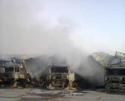 К месту чрезвычайного происшествия сразу было направлено дежурное отделение 21-й Государственной пожарно-спасательной части. По прибытию разведкой было установлено, что горят три грузовых автомобиля: 2 марки DAF и IVECO и вспомогательная постройка. Пожарные сразу приступили к тушению пожара, а учитывая объемы горения, по месту вызова были направлены дежурный караул 10-й ГПСЧ по охране Днепровского района Херсона и команду местной пожарной охраны села Бриловка Алешковского района. Общими усилиями пожар был локализован в 04:00, а ликвидирован в 13:35. Всего на ликвидации пожара было задействовано 12 человек личного состава и 3 единицы спецтехники. Также на месте происшествия работала группа Оперативно-координационного центра ГУ ГСЧС области. Среди пострадавших один водитель, который получил ожоги рук и ног, но от госпитализации отказался. Причина возгорания выясняется соответствующими органами.