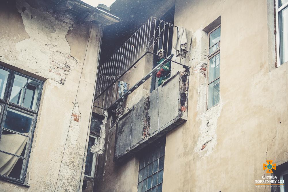 На место событий направлен дежурный караул ГПСЧ-7 Управления и оперативная группа Бережанского районного отдела ГСЧС. Прибыв на место спасатели увидели огромную бетонную плиту, которая повисла на высоте десяти метров, при падении которой существовала реальная угроза разрушения дома и инженерных коммуникаций. Не теряя ни минуты, чрезвычайники, используя стационарную лебедку автомобиля ЗИЛ-131 и металлические тросы зафиксировали обваленные конструкции. Поскольку, проводить работы по демонтажу в темное время суток категорически запрещается, было принято решение организовать дежурство личного состава пожарно-спасательного подразделения до утра.