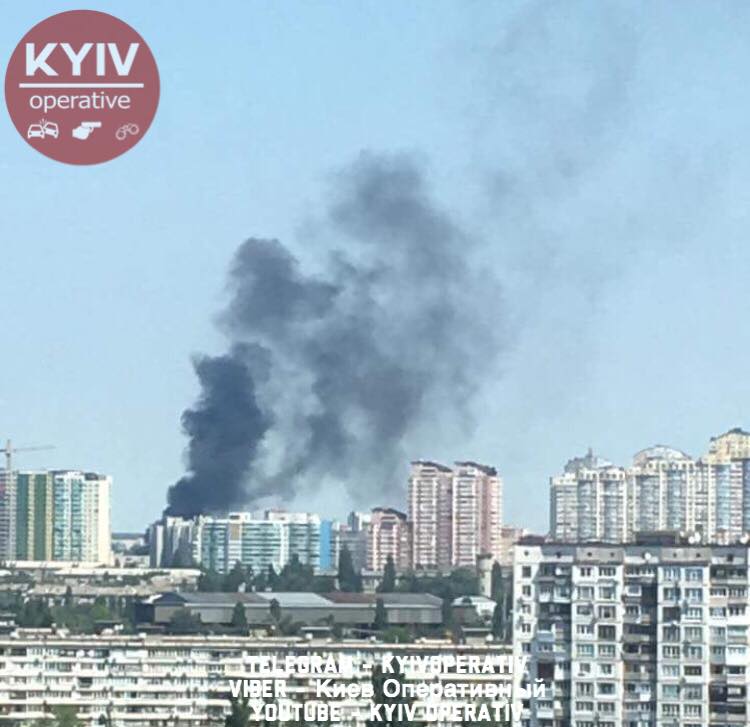 Во время пожара в небо поднялся столб черного дыма, который могли наблюдать многие жители Киева. В сети появились многочисленные фотографии задымления с разных ракурсов.