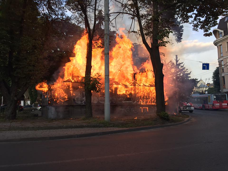 "08.06.2017 в 20:15. Пр. Черновола (ТЦ Форум). Горит киоск, - написал он.