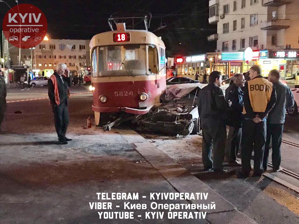 В украинской столице автомобиль марки «Skoda Superb» не разминулся с трамваем. Об этом информирует фейсбук-сообщество «Киев оперативный», новость Киева передает Час Пик.