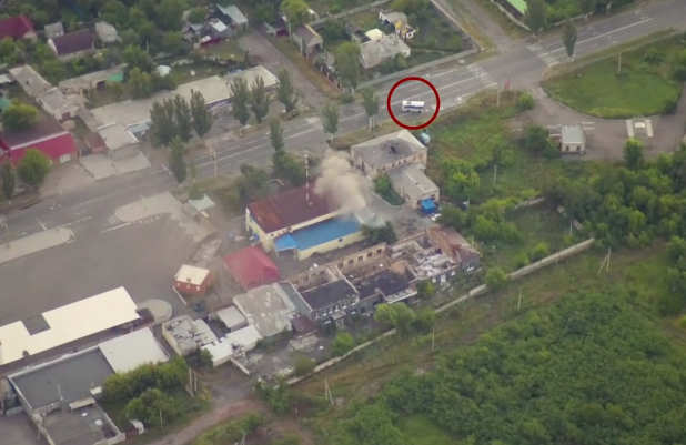 "Во время планового вылета, ища вражескую технику и разглядывая вероятные места работы вражеской артиллерии, наши ребята случайно увидели, что у бывшего магазина что-то дымит.