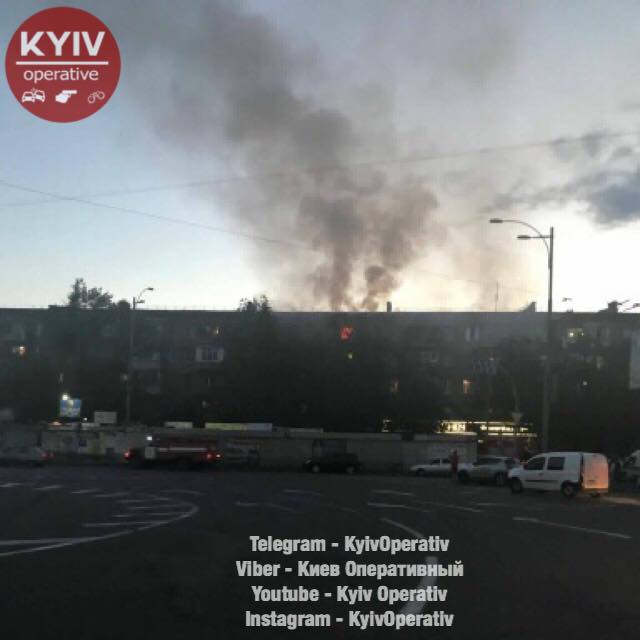 В Киеве сегодня вечером загорелась квартира на последнем этаже многоэтажного жилого дома.