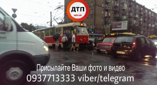 На одной из столичных улиц не разминулись трамвай и легковушка. Об этом сообщается на странице проекта dtp.kiev.ua в Фейсбуке, передает Час Пик.
