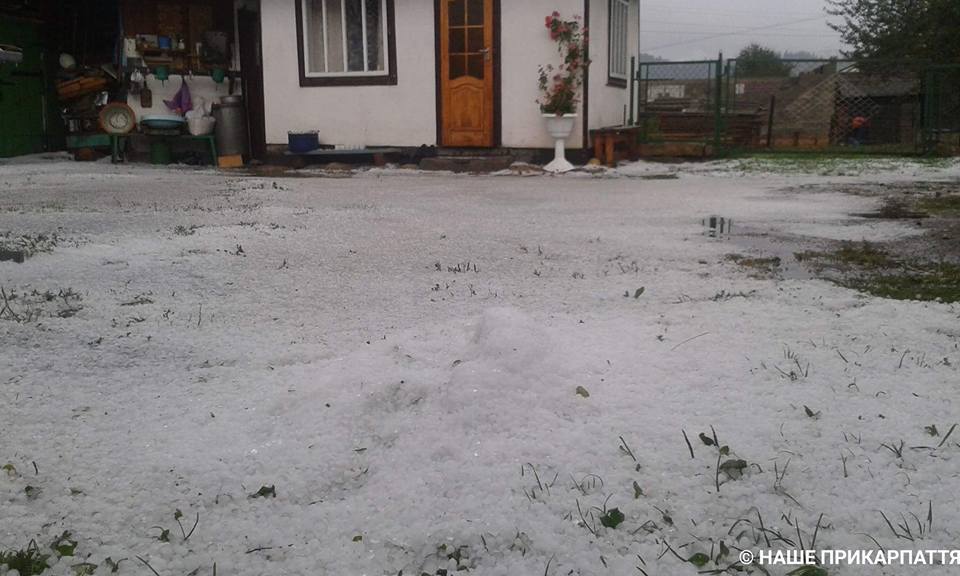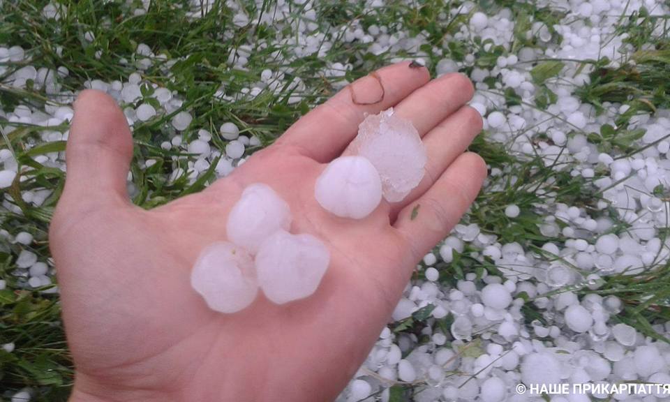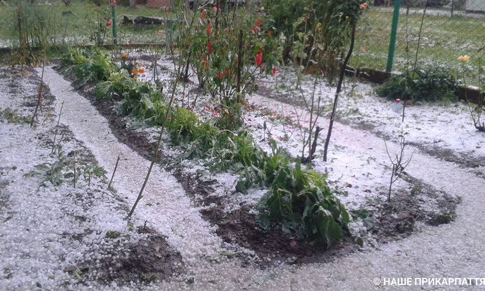 В селе Микуличин град, размером с перепелиное яйцо, уничтожил овощи и фрукты местных жителей. Урожай пострадал всего лишь за 10 минут, также досталось и автомобилям.