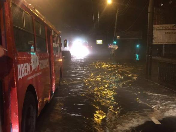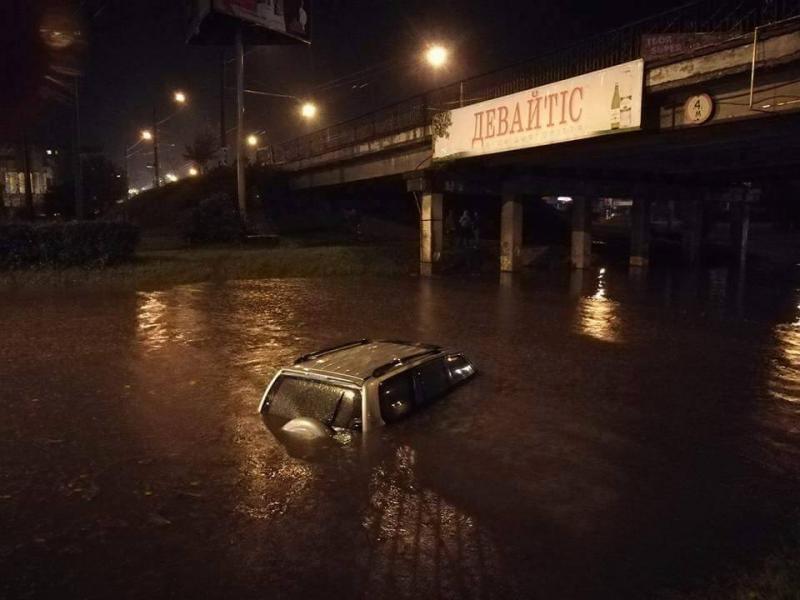 В воскресенье, 3 сентября, в Ивано-Франковске всего лишь за несколько часов выпало больше месячной нормы осадков. В результате стихии улицы полностью затопило водой, уровень которой достигал автомобильных фар. Из-за сильного ливня и ветра водители остались без номерных знаков на авто. Их просто посрывало и унесло потоком воды.