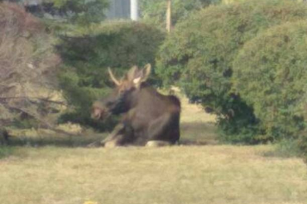 В районе Московского моста в украинской столице обнаружили огромного лося. Очевидцы сфотографировали, как дикое животное отдыхает на газоне.