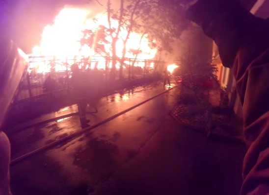Тушение страшного пожара в детском лагере "Виктория" в Одессе запечатлела нагрудная камера одного из спасателей.
