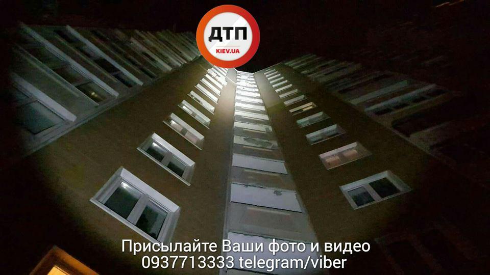 В Киеве поздно вечером 12 октября мужчина упал с 16-го этажа высотного дома и скончался мгновенно.