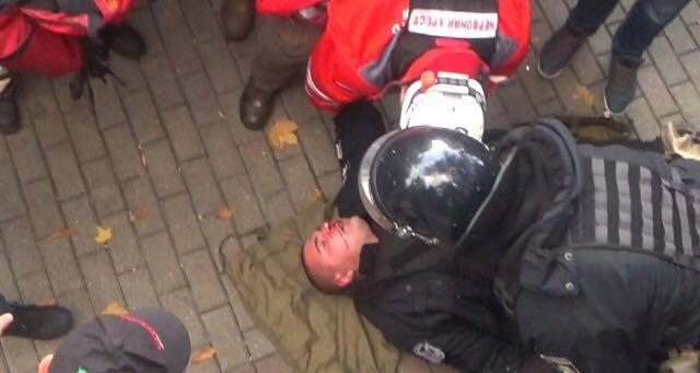 "Как и предполагалось, отморозки Саакашвили и Гришина, даже не думали проводить мирную акцию протеста. При любых обстоятельствах им были нужны схватки, насилие, провокации и кровь. Сейчас в результате агрессивных действий провокаторов есть первый пострадавший полицейский, его забрала скорая.