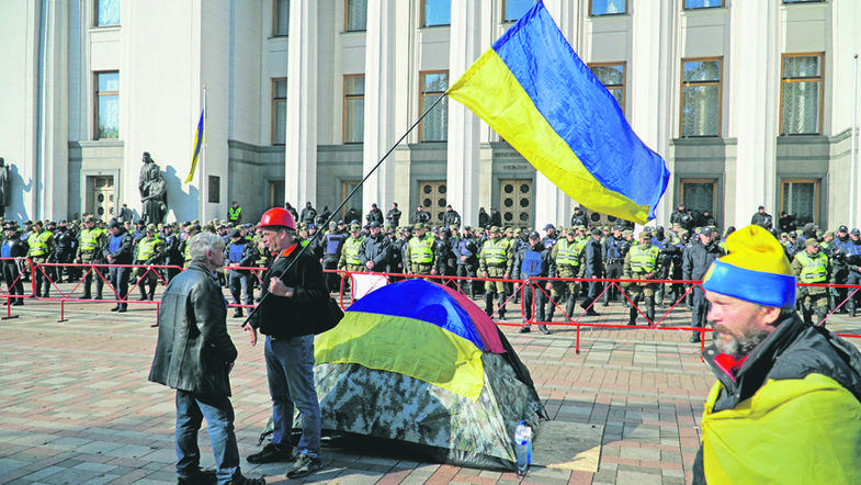 "Мы передали президенту законопроект об антикоррупицонном суде", - объявил Левченко протестующим.