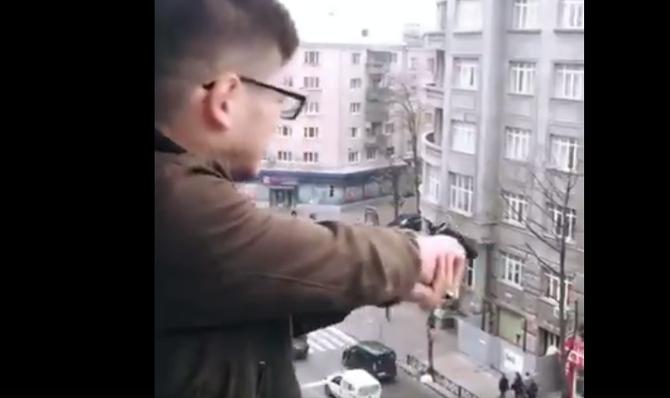В Харькове компания молодых людей решила "поразвлекаться" посреди бела дня. Один из мажоров вышел на балкон с пистолетом и начал стрелять.
