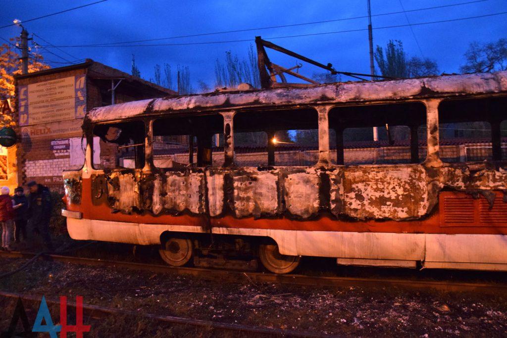 Возгорание трамвая произошло вечером 27 октября в Пролетарском районе Донецка. Огонь полностью уничтожил салон транспортного средства.