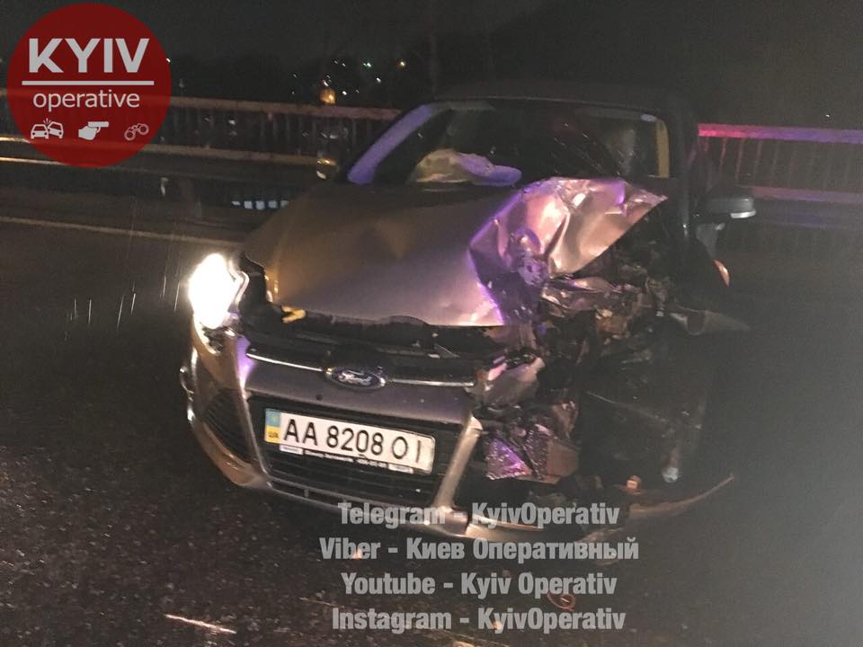 Масштабное пьяное дорожно-транспортное происшествие произошло сегодня ночью на въезде на Южный мост (со стороны Сапёрно-Слободской) в Киеве.