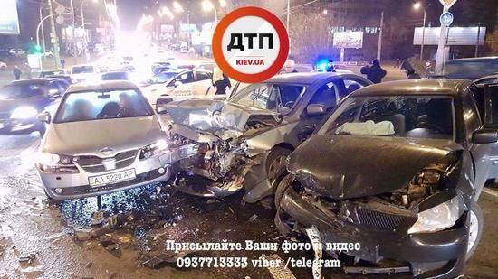 В украинской столице на Воздухофлотском проспекте произошло жуткое ДТП с участием четырех автомобилей. Авария случилась вечером, 15 ноября.
