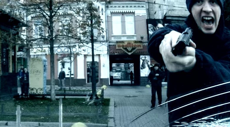 В центре Киева вооруженный инспектор патрульной полиции атаковал автомобиль, в котором ехала семейная пара. Неадекватное поведение полицейского зафиксировал видеорегистратор.
