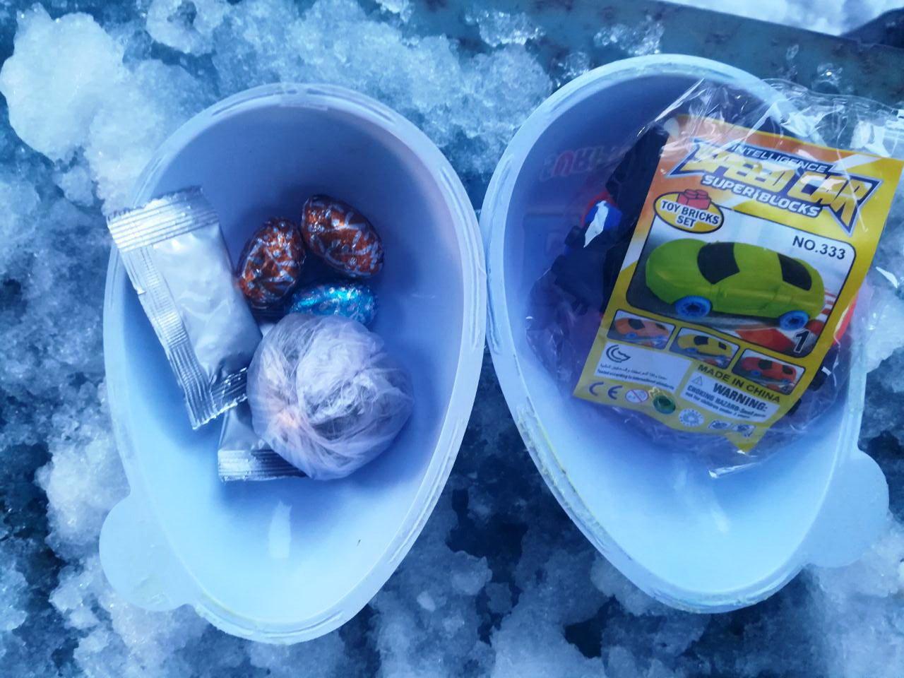 Как результат, в багажном отделении автомобиля среди личных вещей было обнаружено шоколадное яйцо-киндер со «взрослым» сюрпризом и «бодрый» зеленый чай с добавлением наркотического вещества. Мужчина скрыл серо-зеленое вещество, вероятно марихуану, в детской игрушке «Киндер-сюрприз» и сунул в пакет с чаем. По словам водителя такие «посленовогодние» подарки из Украины в Молдову передал его знакомый.