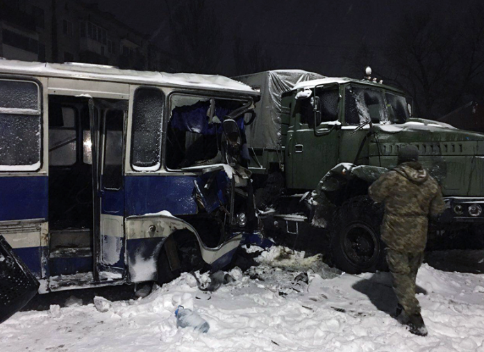 23 января в 5.30 пассажирский автобус "ПАЗ" Добропольской автобазы, осуществлявший доставку работников шахты Алмазная, стал участником ДТП. Автомобиль ВСУ "КРАЗ" выехал на встречную полосу дорожного движения, в результате чего произошло столкновение с автобусом "ПАЗ". В автобусе находилось около 30 пассажиров.