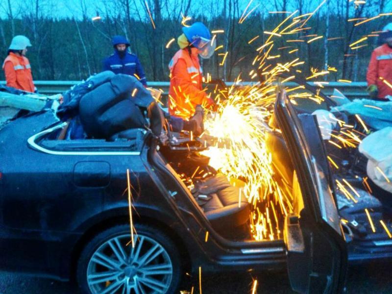 С помощью бензореза и гидравлических ножниц бойцы ГСЧС высвободили водителя, тело которого насквозь прошил отбойник. Также они деблокировали погибшей женщины, которой зажало ноги передним сиденьем.
