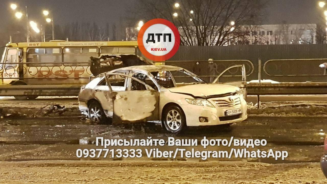 Вчера ночью в Киеве на Броварском проспекте возле станции метро Лесная было взорвано авто Тойота Камри. Полиция объявила план-перехват. Об этом написал на своей странице в Facebook журналист Юрий Зубар, передает Час Пик.