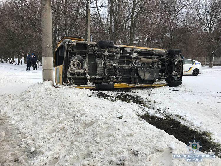 19 марта в 13:46 водитель маршрутного такси 1962 года рождения на улице Днепровское шоссе в городе Запорожье при осуществлении обгона не справился с управлением. В результате микроавтобус перевернулся.