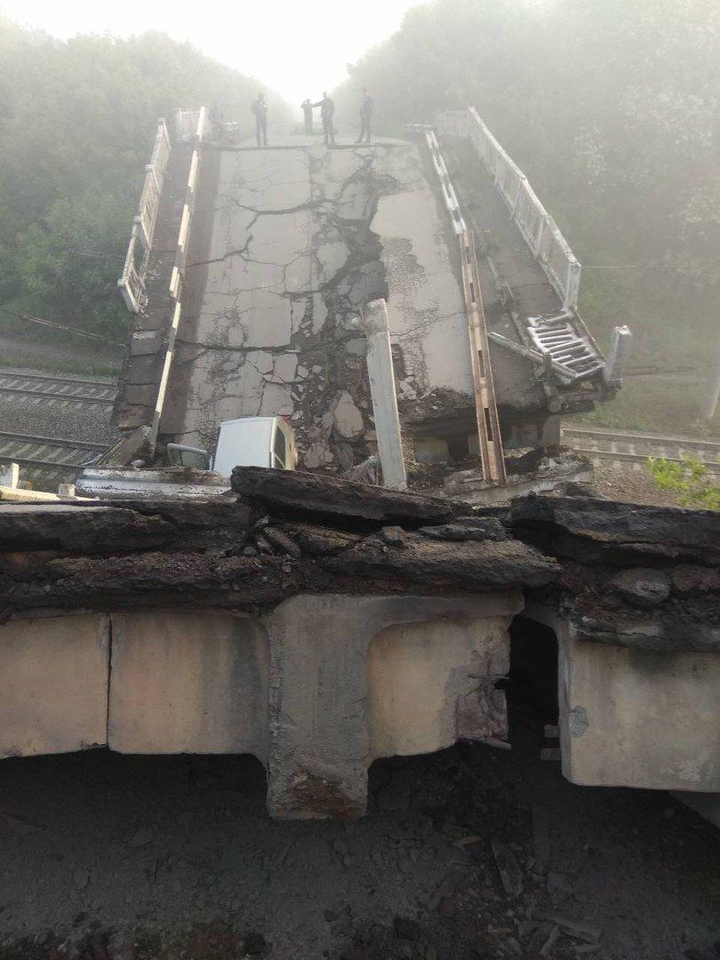 Украинский журналист Денис Казанский считает, что мост мог рухнуть сам, так как находился в ужасном состоянии - был разбит углевозами и бронетехникой. Об этом он написал у себя в Twitter.