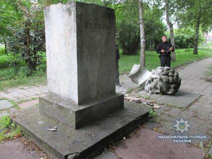 Сегодня, 2 июля, около 09.00, в Золочевский отдел полиции поступила информация от работника коммунального предприятия о том, что в городе Золочев, в сквере на перекрестке улиц Коперника - Шухевича, у постамента обнаружен бюст Александра Пушкина.