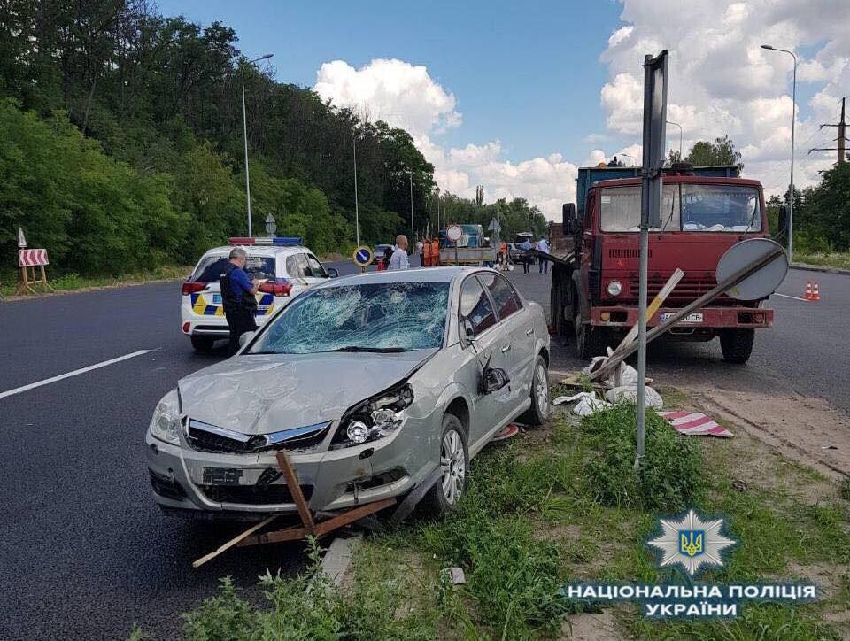 63-летний киевлянин - водитель автомобиля «OPEL Vectra», по неустановленным пока причинам совершил наезд на группу работников частной дорожной службы «Автомагистраль», которые наносили дорожную разметку.