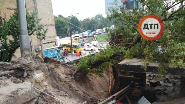 В украинской столице на пересечении улиц Телиги и Кирилловской сильные осадки размыли мост.
