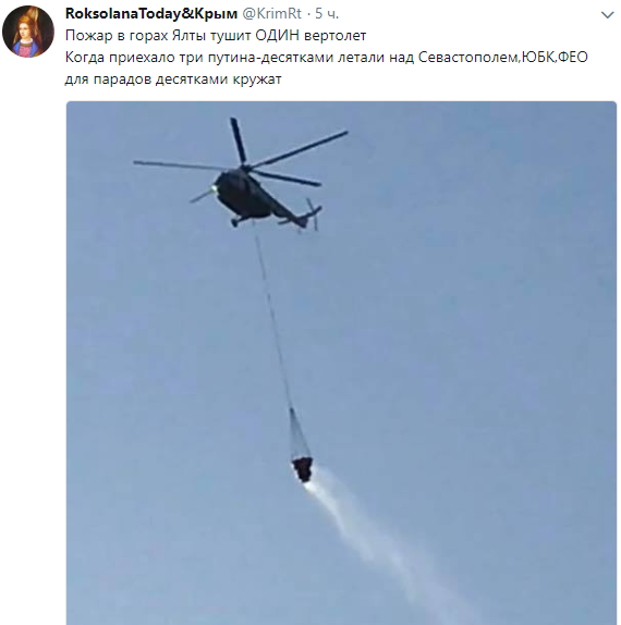 Утром тушением пожара занялся вертолет МЧС, однако результативность его работы была практически нулевой. Как сообщают местные жители, вертолет не мог прицелиться и выливал воду в 300 метрах от возграния.