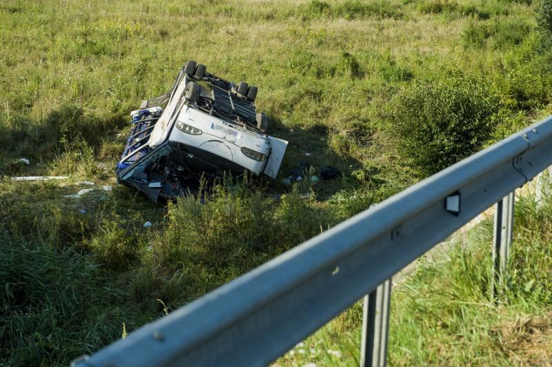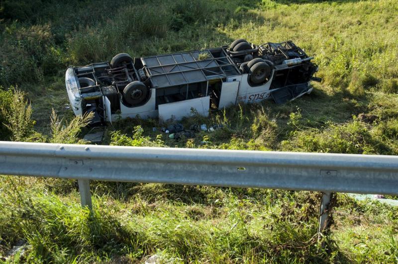 В венгерском регионе Ноград автобус, в котором предположительно находились граждане Украины, вылетел с трассы и перевернулся на крышу.