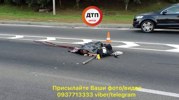 Смертельное ДТП: Труп на Набережной под мостом метро в Киеве: кровь по всему асфальту. Видео 18+.