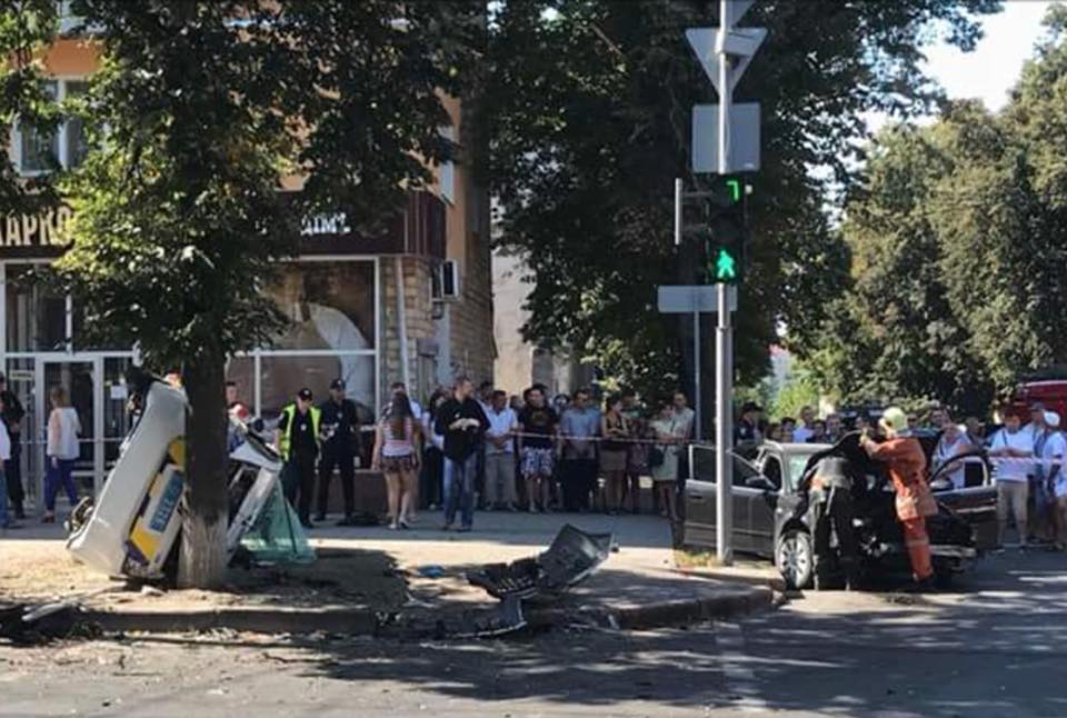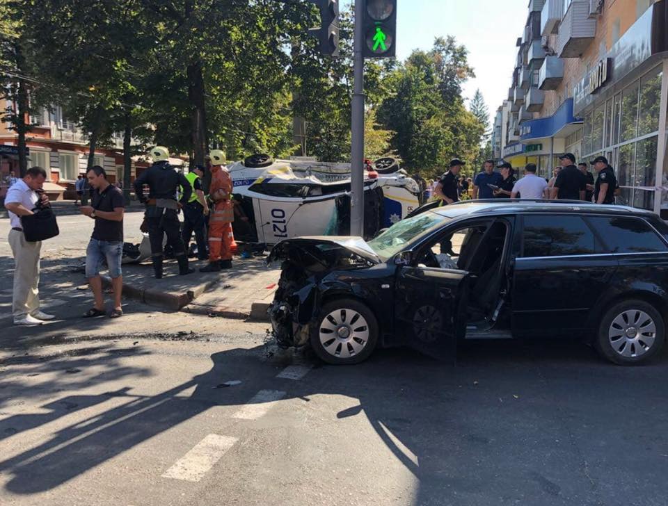 В Сумах на улице Петропавловской сегодня, 19 августа, произошло серьезное ДТП с участием автомобиля патрульной полиции "Приус".