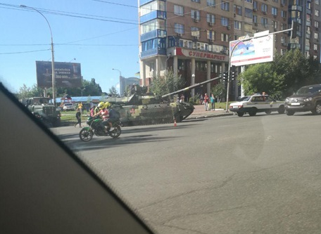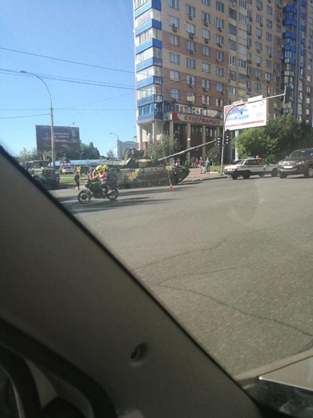 В центре Киева внезапно заглох танк, который ехал на генеральную репетицию парада ко Дню Независимости.
