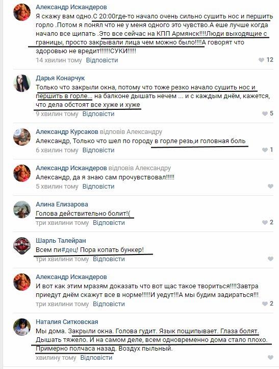 Местные оккупационные власти уверяют, что "угрозы жизни и здоровью от выбросов нет". Тем временем пользователи сети считают иначе и призывают жителей Армянска скорее вывозить детей из города.
