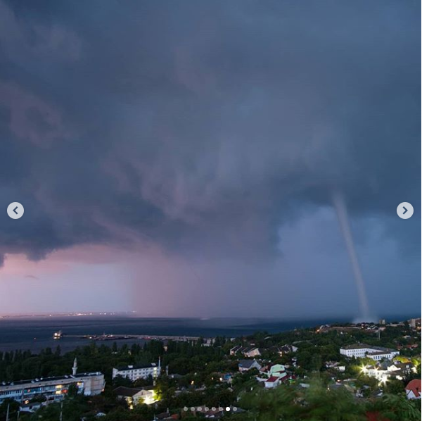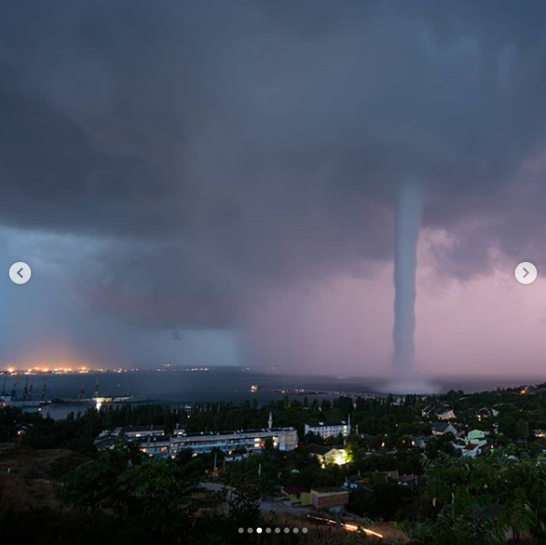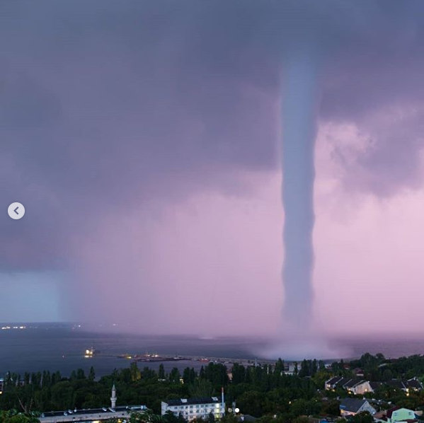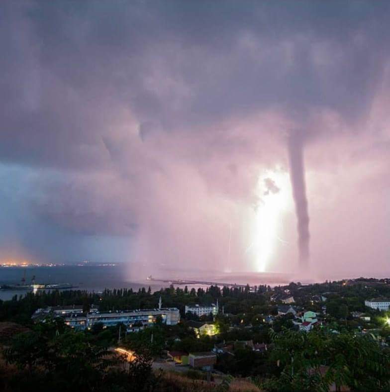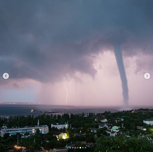 Крымский фотограф Андрей Шелякин обнародовал в Instagram фото мощного смерча во время грозы, который разгулялся у берегов Феодосии.