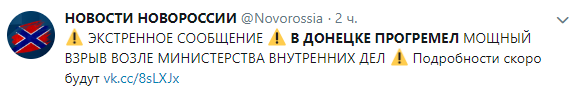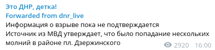 "9 сентября на территории Донецка не было зафиксировано никаких взрывов и ЧП техногенного характера", - заявили в "МВД ДНР". Пропагандисты "республиканского" сайта ДАН пишут, что " никаких последствий взрывов в указанном месте не наблюдается".