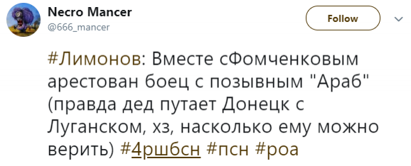 Блогер Necro Manker добавляет, что вместе с комбатом задержан еще один боец с позывным "Араб".