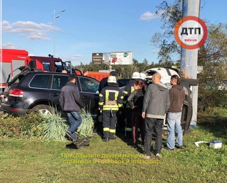 В Киеве на Бориспольской площади произошла смертельная авария с участием автомобилей Фольксваген и Фиат.