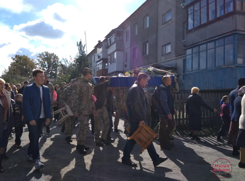 В поселке Гранитном Житомирской области вчера, 5 октября, состоялось прощание с военнослужащим ВСУ Алексеем Влодарським, жизнь которого оборвала пуля снайпера боевиков.