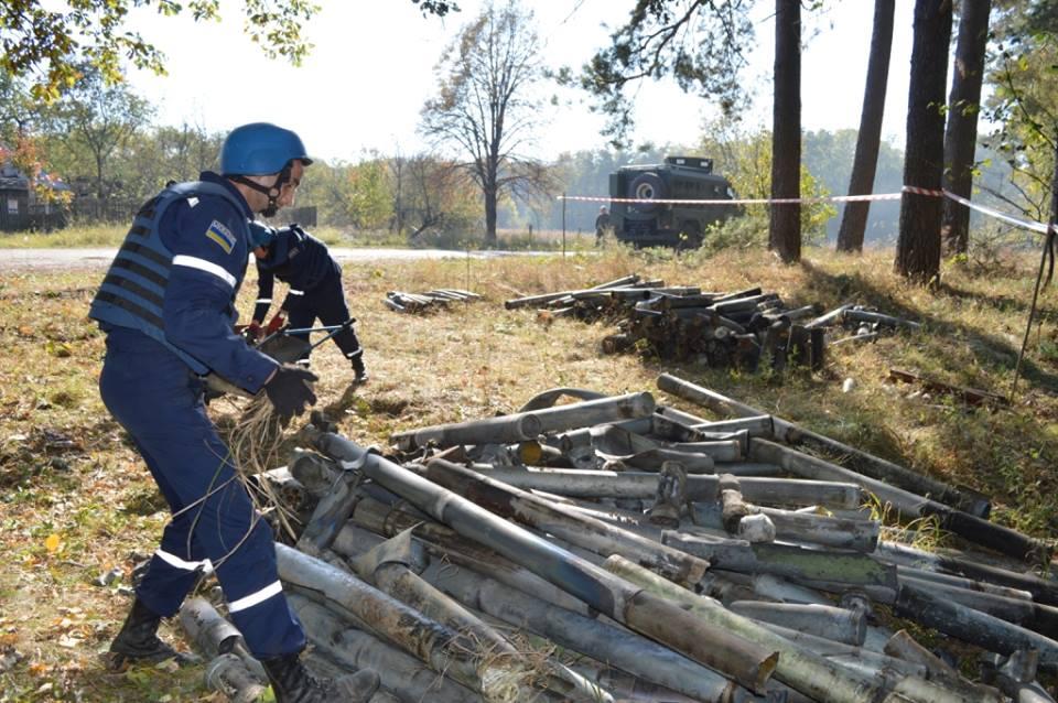 В населенных пунктах вблизи арсенала работает 21 пиротехническая группа от ГСЧС Украины с целью очистки местности, дорог и подъездных путей от остатков взрывоопасных предметов.
