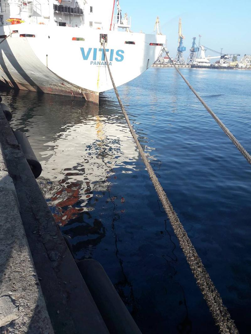 Специалисты Мариупольского филиала ГП «АМПУ» обнаружили загрязнение акватории Мариупольского морского порта, в районе причала № 3 в месте проведения грузовых операций судном «Vitis». Загрязнение обнаружили 18 октября. Об этом факте незамедлительно была проинформирована Государственная Азовская морская экологическая инспекция.