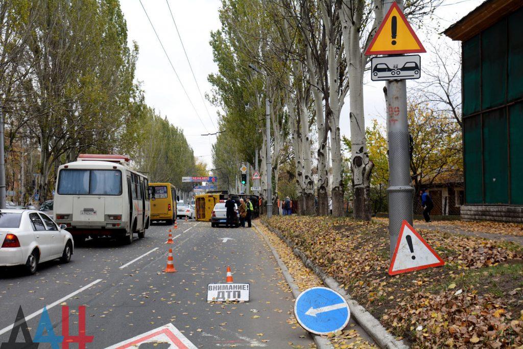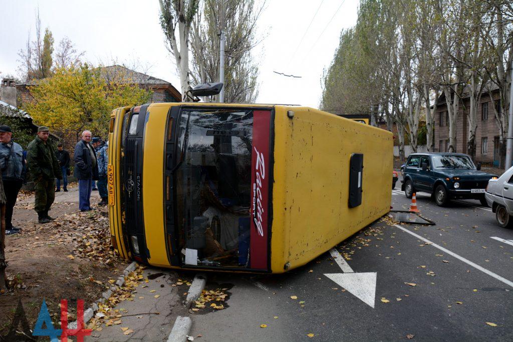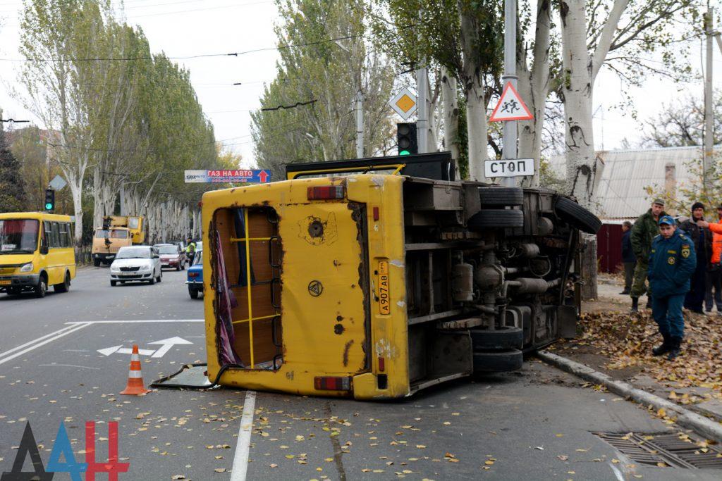 24 октября в центре оккупированной Макеевки перевернулся пассажирский автобус, есть пострадавшие.
