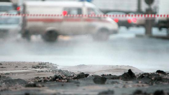 Улицу заволокло густым паром, поднимающимся из-под земли, что создавало плохую видимость на дороге. Правоохранители перекрывали движение транспорта, пока коммунальщики проводили откачку воды.