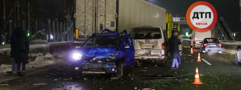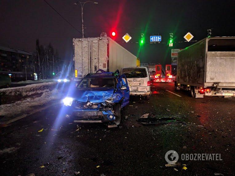 Как сообщается, пострадавшие автомобили двигались со стороны Киева. Они стояли на светофоре в тот момент, когда фура начала двигаться по диагонали из крайней полосы. Грузовик зацепил одну из машин, врезался в отбойник, после чего протаранил остальные авто.