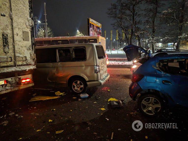 Под удар попали автобус "Богдан", Volkswagen Caravelle, Volkswagen Tuareg, Mercedes ML350, Opel Vectra и Renault Sandero.