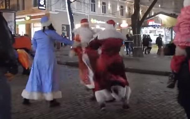 Дваое мужчин, одетых в костюмы Деда Мороза, подрались в Одессе на улице Дерибасовской. Причиной стало "хлебное место" для зарабатывания денег.