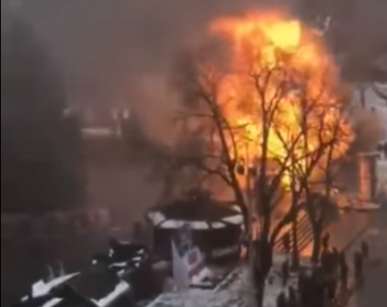 Очевидцы сняли на видео взрыв точки быстрого питания на рождественской ярмарке во Львове.