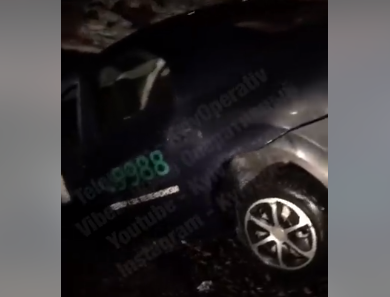 В Киеве автомобиль из службы такси Uber провалился в яму, которую водитель не заметил в темноте.